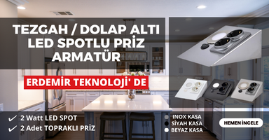 TEZGAH/DOLAP ALTI PASLANMAZ METAL LED SPOTLU PRİZ ARMATÜR